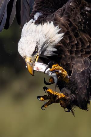 Bald Eagle taking in a catch form the Snake River at Palisades in Idaho