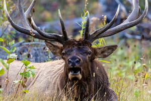 Bull Elk relaxing in a pasture in Yellowstone.